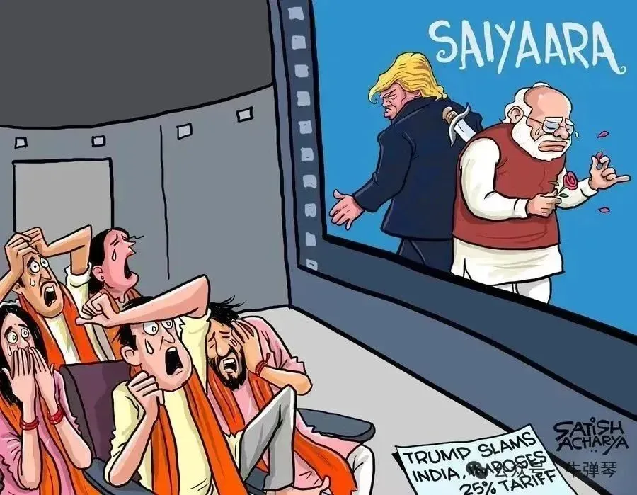 之前,特朗普对印度大棒挥舞,征收印度50%关税,全世界最高;特朗普还骂印度死亡经济,各种奚落嘲讽。